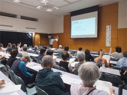| (講演会全体の様子) | (参加者に質問! 「遺言書作ってますか?」)